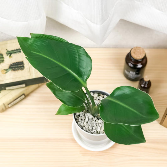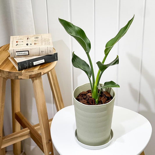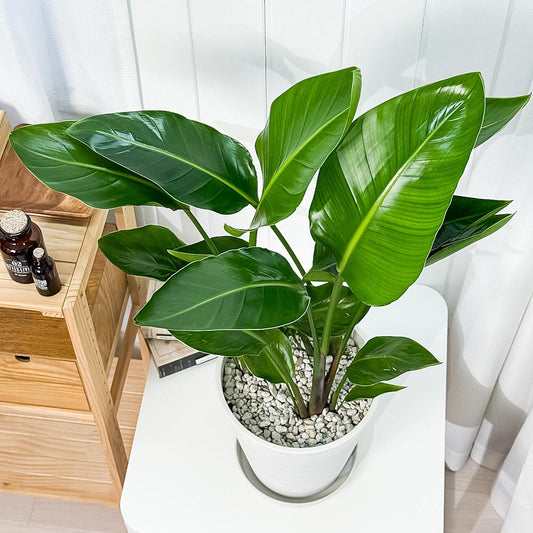 PLANCHU 観葉植物 ストレリチア オーガスタ 5号樹脂鉢 ホワイト サスティー付き 受け皿付き 育て方説明書付き Strelitzia nicolai ニコライ 楽園の白い鳥 極楽鳥花