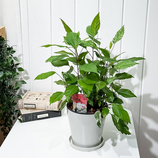 PLANCHU 熱帯花木 ハイビスカス レッドロコ 5号鉢 受け皿付き 育て方説明書付き Hibiscus cv. 斑入り 鉢花 花 観葉植物 苗