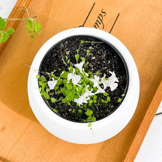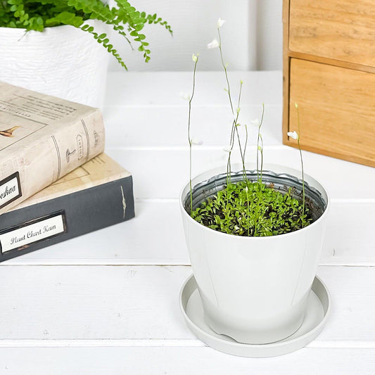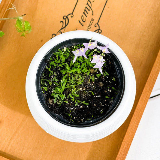 PLANCHU 食虫植物 ウトリクラリア サンダーソニー 白花 3号丸鉢 受け皿付き 育て方説明書付き Utricularia sandersonii ウサギゴケ ミミカキグサ