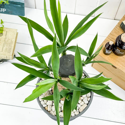 PLANCHU 観葉植物 ユッカ グアテマレンシス 7号樹脂鉢 ダークグレー 受け皿付き 育て方説明書付き Yucca guatemalensis マヤツリー
