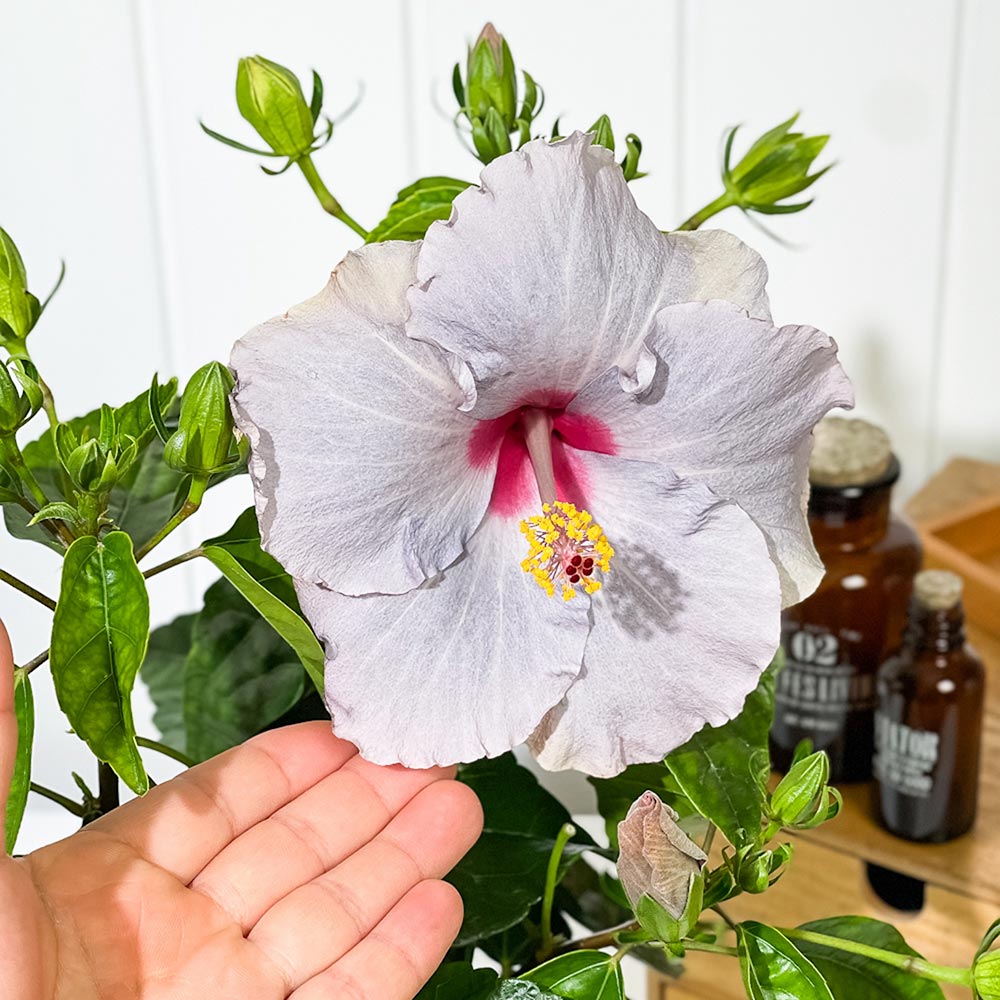 本種「NEWロングライフシリーズ」は、デンマークのGRAFF社が育種した、世界で最も売れているコンパクトタイプのハイビスカスです。従来のハイビスカスに比べ非常に花持ちがよく、3~4日咲き続けます。