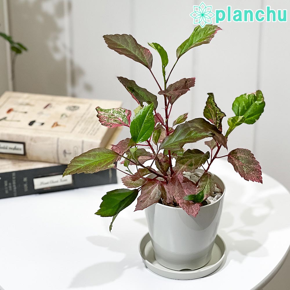 PLANCHU 熱帯花木 ハイビスカス レッドロコ 3.5号鉢 受け皿付き 育て方説明書付き Hibiscus cv. 斑入り 鉢花 花 観葉植物 苗