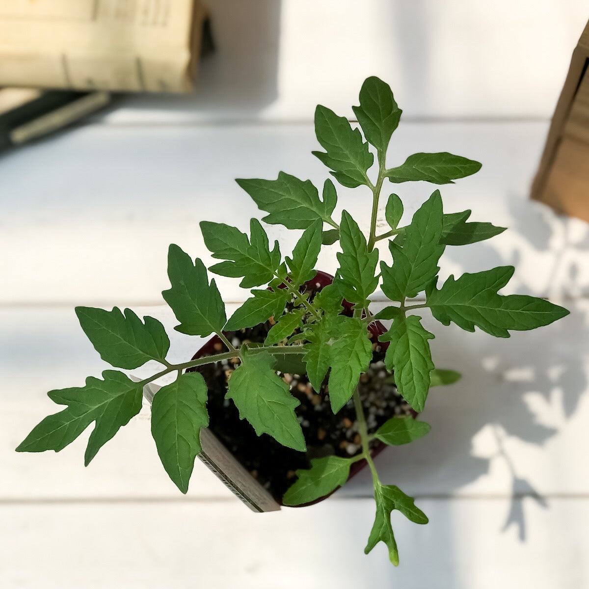 安定して糖度が高い中玉トマトです。ひとくち口に含むと果物のような甘さが広がるのが大きな特長です。栽培中の実割れが少ないので、初心者の方にもおすすめです。キュウリモザイクウイルス(CMV)の予防接種をした病気に強い苗です。