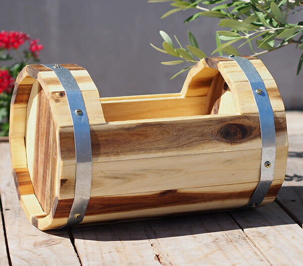 ベトナム製 アカシア 木製植木鉢 ラウンドウッドプランター JAN4989372399195